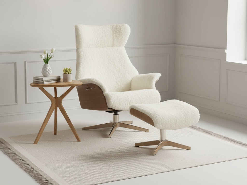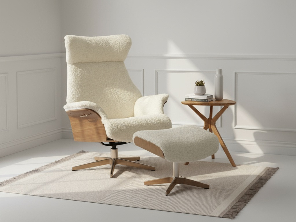 För en ännu skönare sittupplevelse köp till den tillhörande fotpallen. Fotpallen kan väljas med eller utan ytfanér. Väljer man utan ytfanér så blir pallen helklädd i tyg eller skinn. Väljer man fårskinn kommer sidorna i matchande tyg.