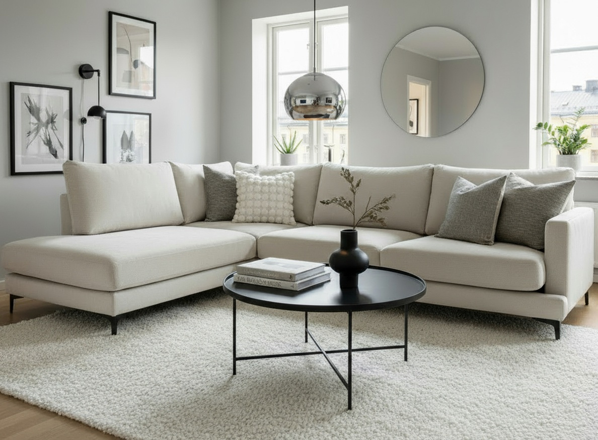På nätet kan du beställa Boom Hörnsoffa i våra populära tyger: Tarim och Diego.