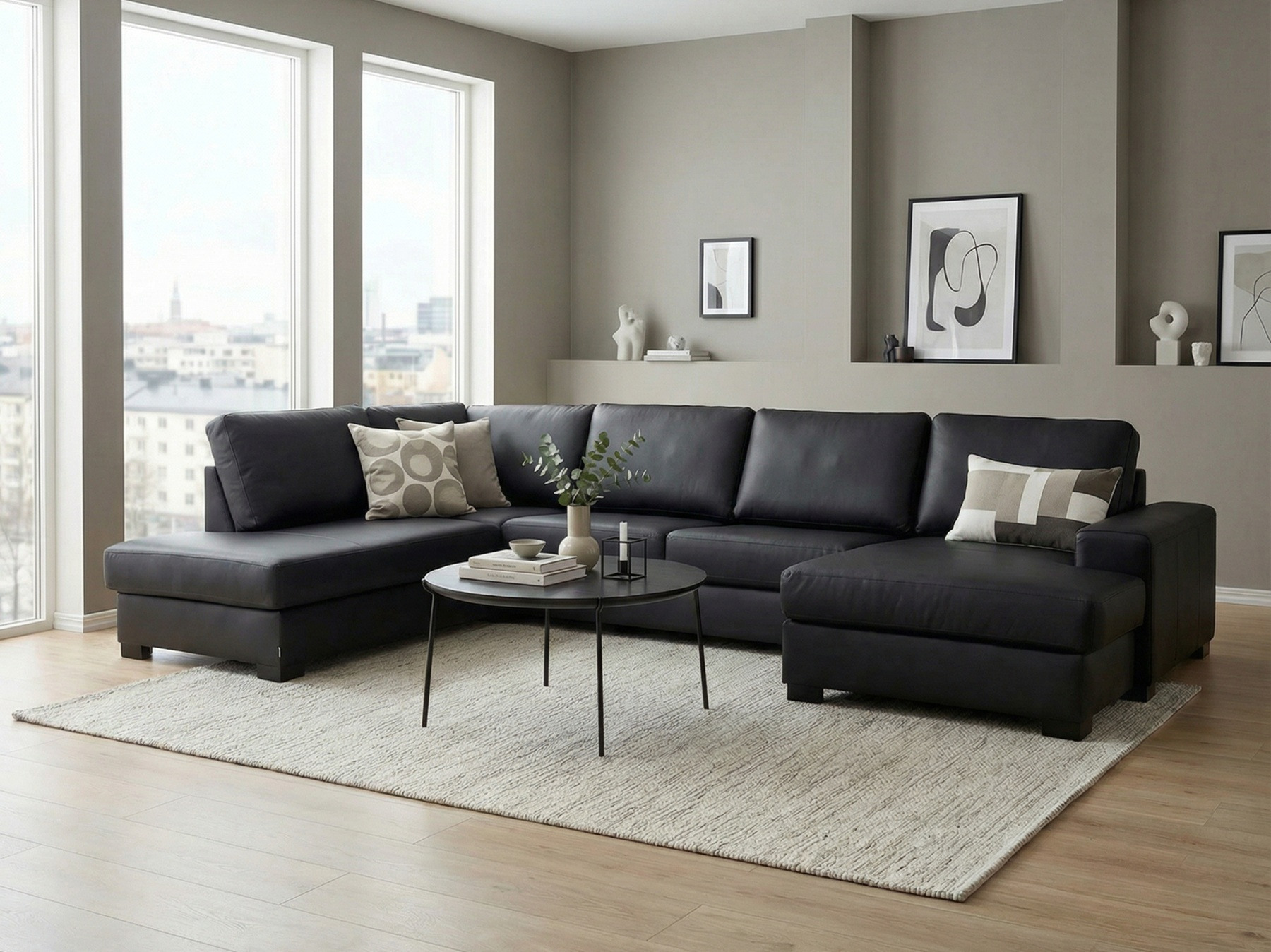 Casino U-soffa i skinn är en sann klassiker från den kända soff-tillverkaren Bellus. Väldigt bekväm och rymlig u-soffa där hela familjen ryms.