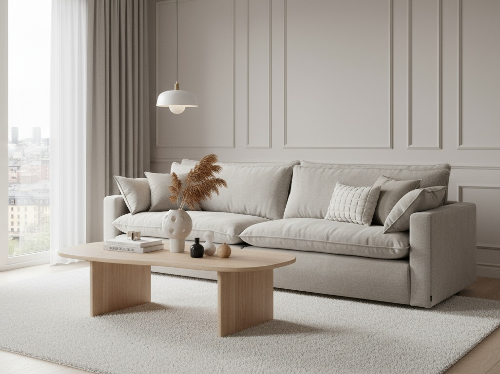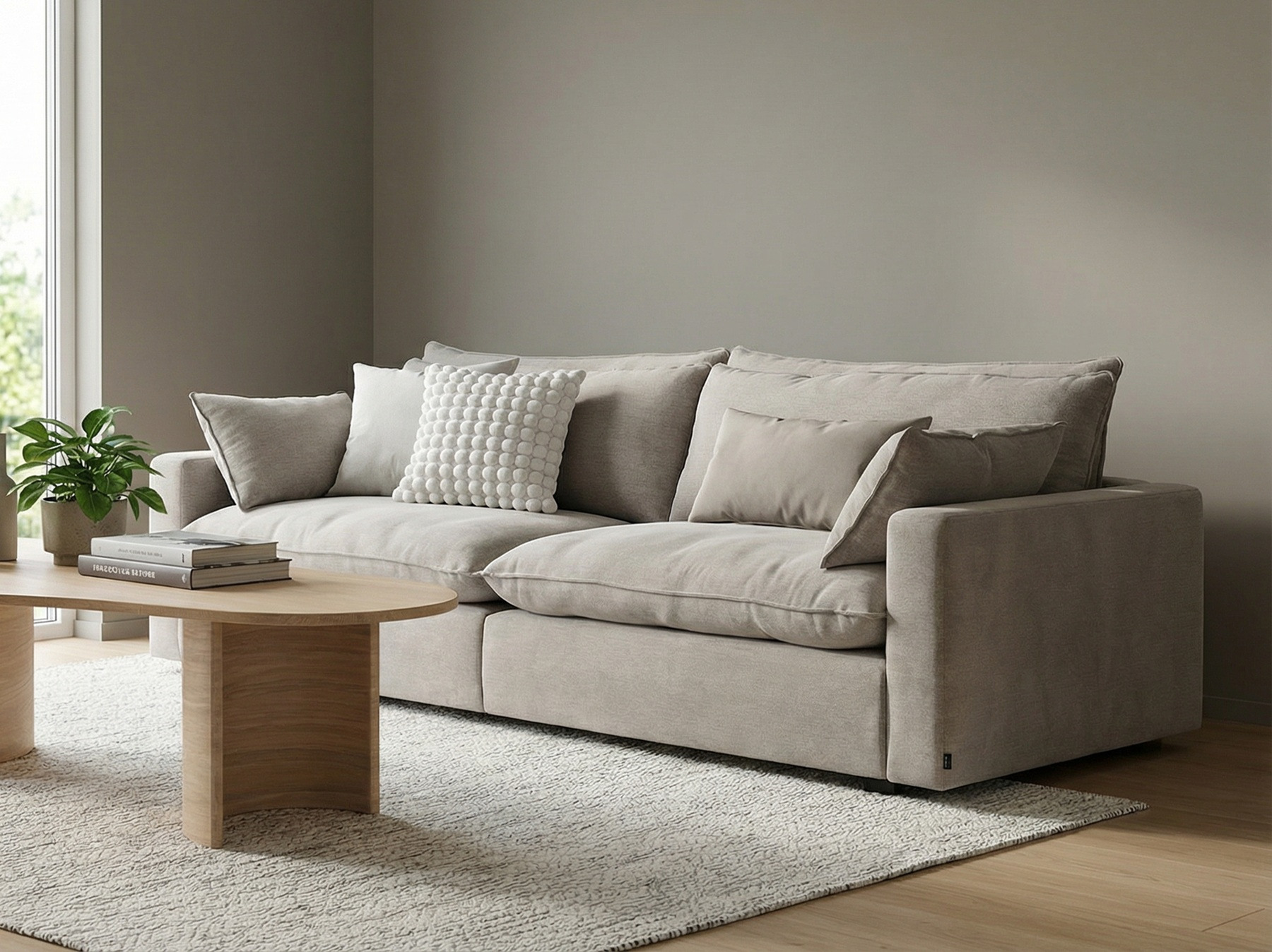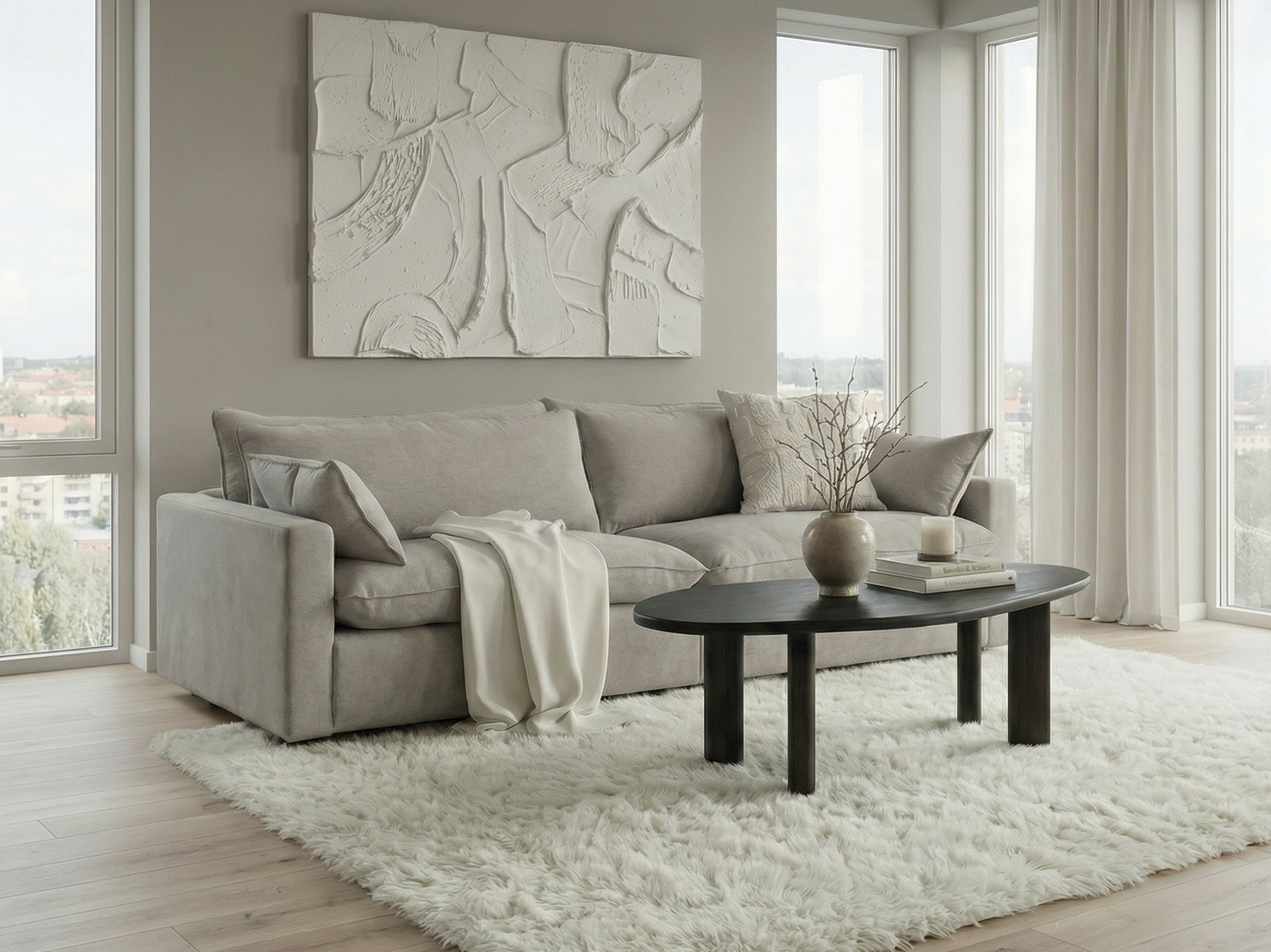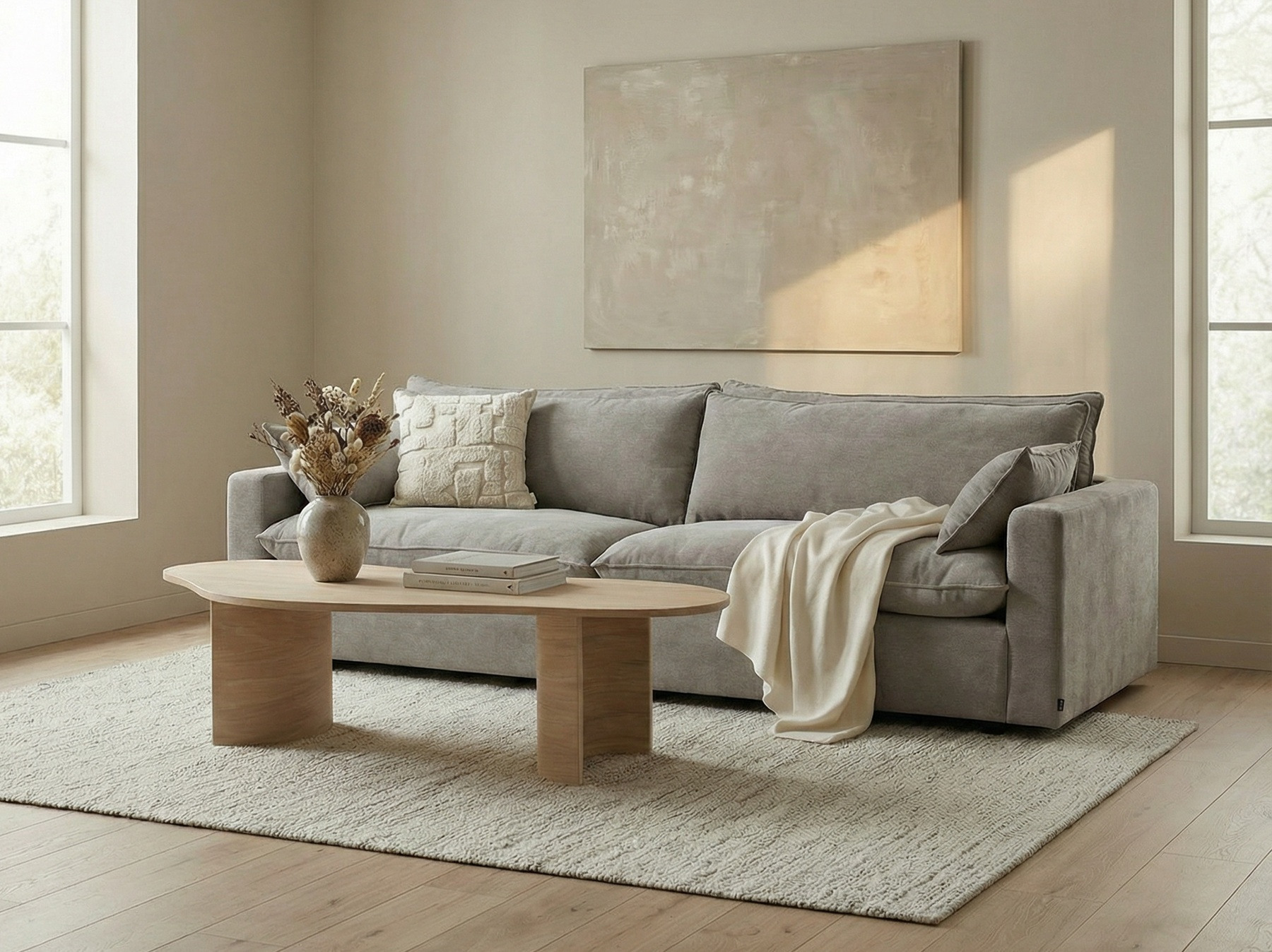 Naomi 3,5-sits soffa (269cm) från Burhens är en av våra absolut gosigaste lounge soffor. Den generösa stoppningen i dun ger en otroligt skön och följsam känsla. Generöst sittdjup som gör att man verkligen kan krypa upp i soffan. Helt enkelt den optimala TV-soffan som får dig att längta hem varje dag.