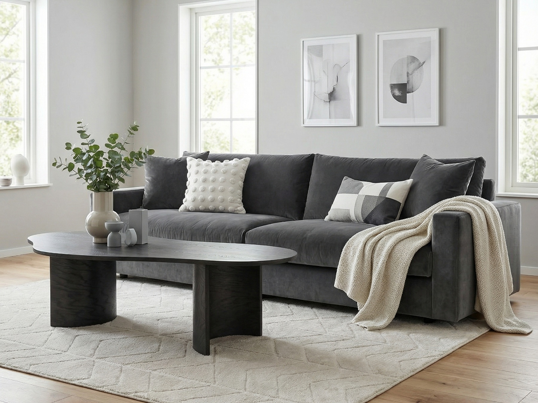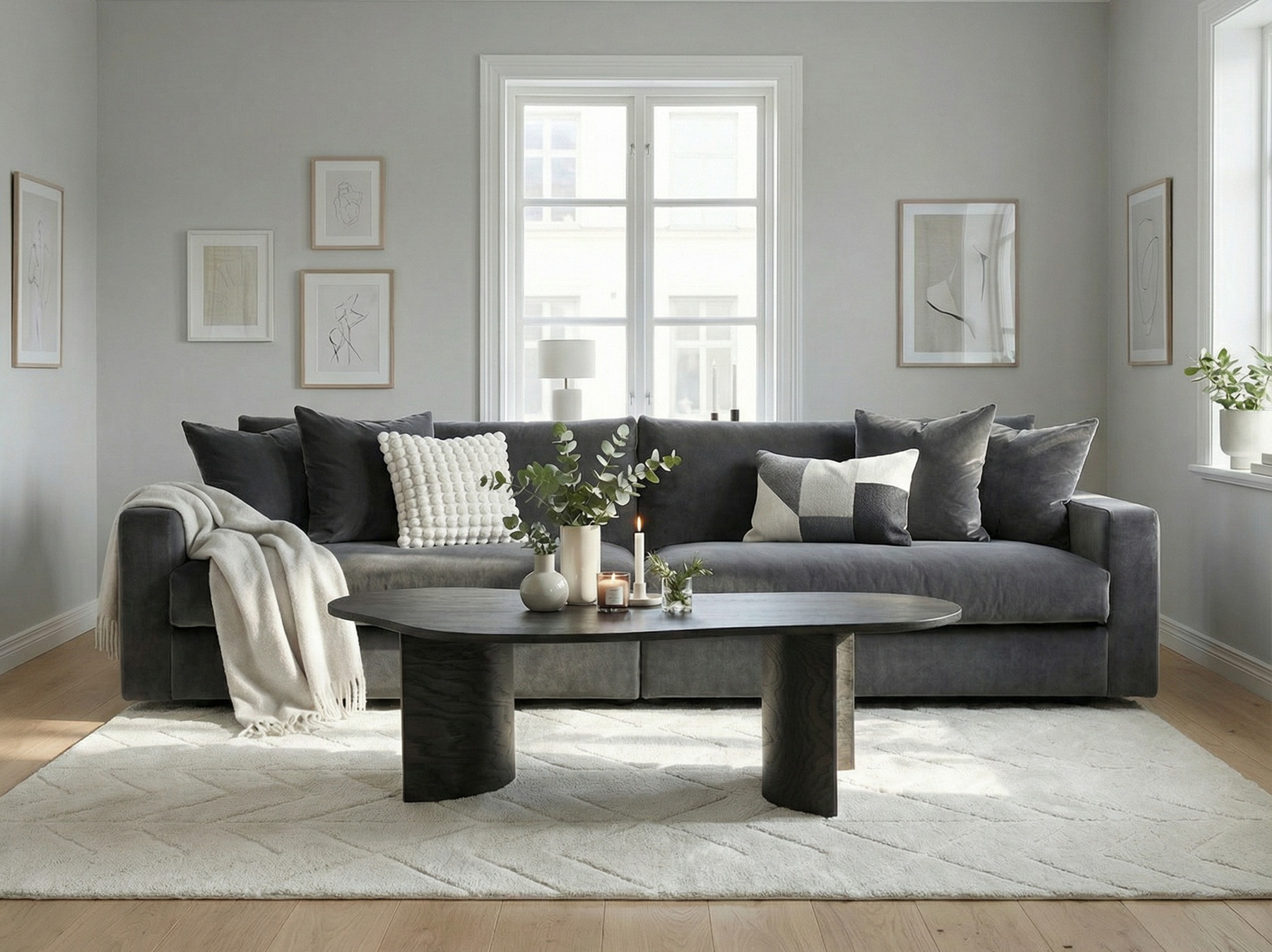 Aston är ett väldigt mjukt och följsamt sammetstyg i polyester. Prydnadskuddarna på bilden säljs separat för 645:-/st eller som ett paket för 2.000:-.